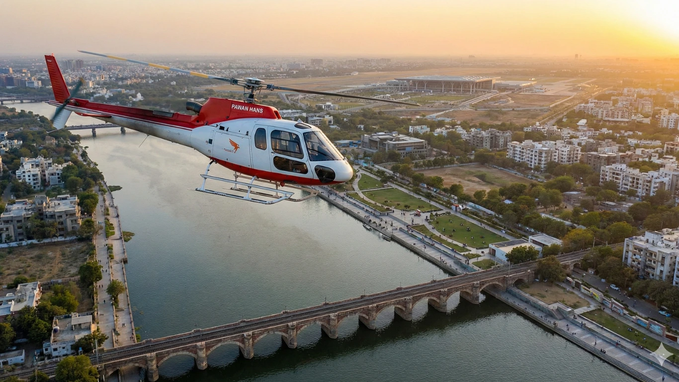Aap chahe Ahmedabad, Surat, Vadodara, Rajkot ya Jamnagar se ho — booking hamare website ke official helicopter booking pages se hi hoti hai: